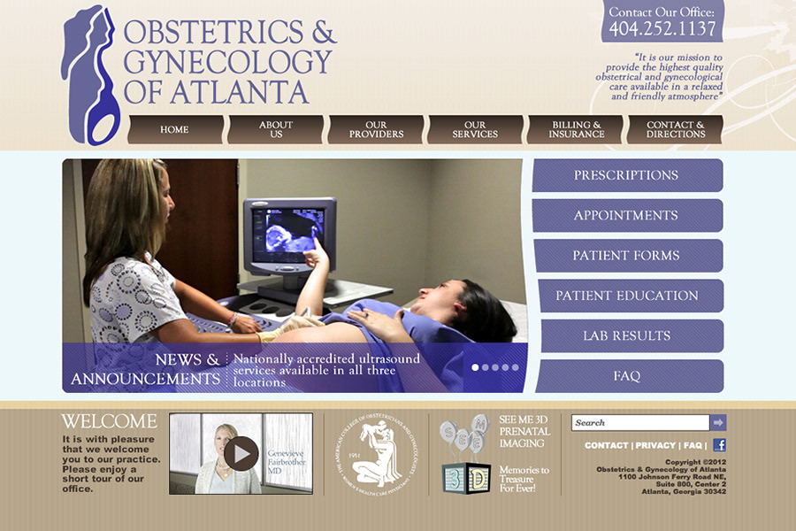 Web site design and coding for Obstetrics and Gynecology of Atlanta